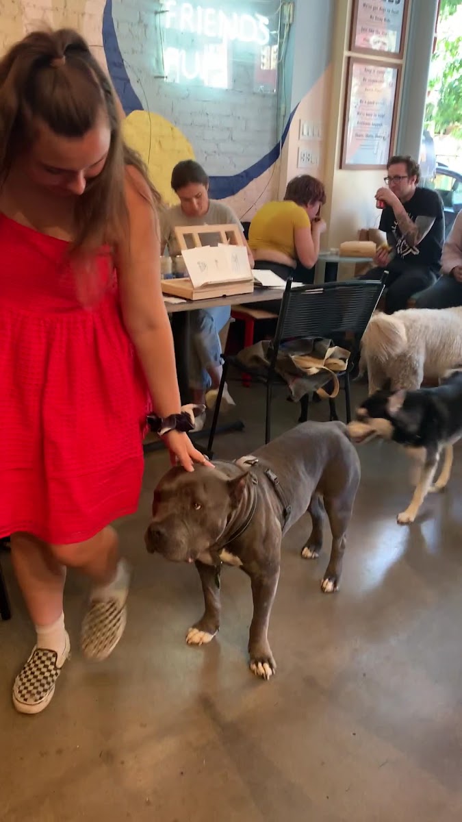 Best dog friendly spot in the city! As a dog "uncle" i love being able to pop in for a little doggie time, stay cool or warm up, and have some tasty treats. Service and staff is friendly, efficient, and easy. Dogs can be off leash in half the area, and there's lots of regulars. I really liked the iced teas, cocktail options, and the pesto mozzarella was delicious! Looking forward to my next visit!