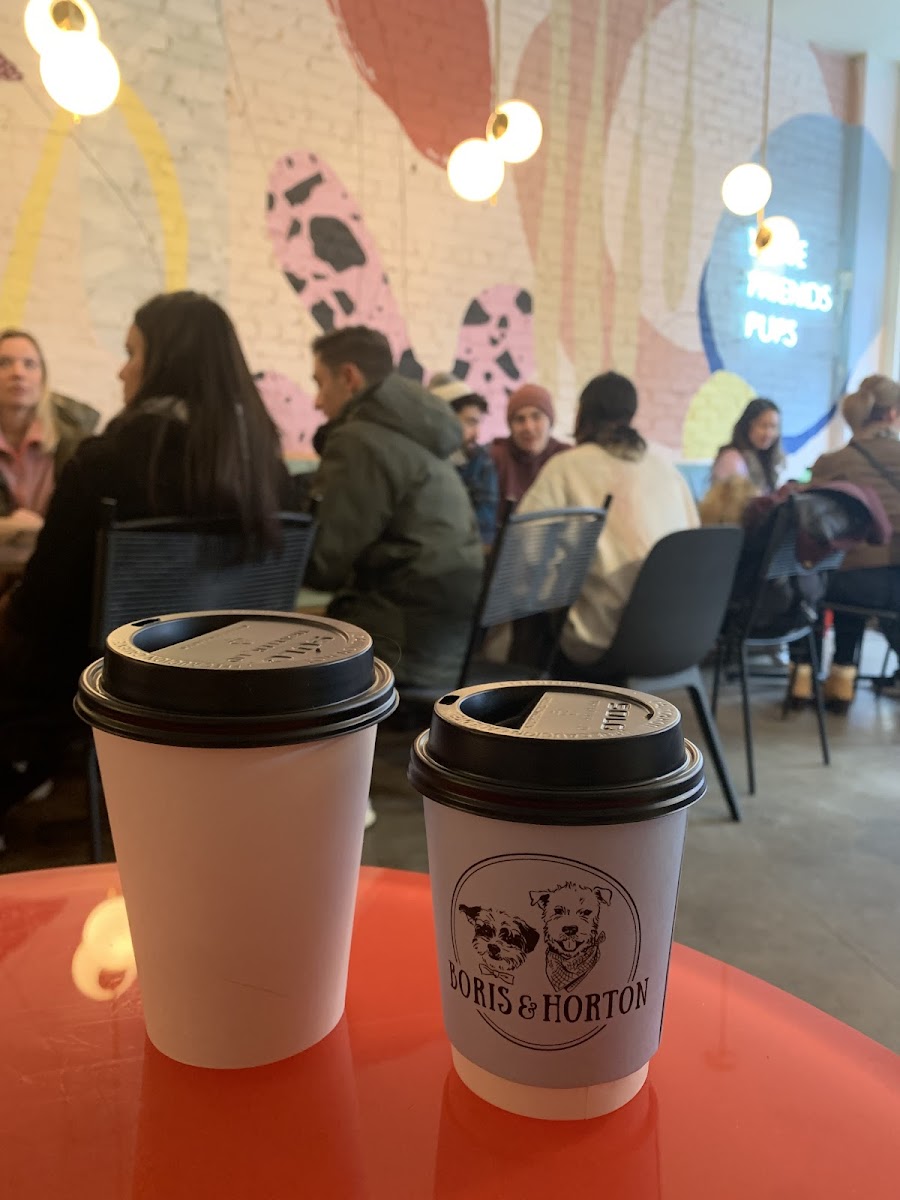 We finally checked out the reopening of Boris & Horton. There’s two separate rooms and entrances, one for humans and one for dogs. I liked how they have a controlled door where you can enter one at a time for the safety of dogs. When we entered, tbh, it was a bit chaotic. It was filled with both people and dogs, but more people than dogs. It was super loud in there and not a lot of space for dogs to roam around. There were a couple of people without dogs dining and felt a bit uncomfortable because my pup likes to jump up on the table and smell/eat the food, so I felt a bit uneasy because I didn’t want my pup to disturb them. There was also a big group that was celebrating a birthday, which was not the dog’s birthday but the owner’s (I just don’t think it’s the right place to have one, tbh). However, I did really enjoy the cold brew and cheese danish, but dogs aren’t allowed in the other room where you have to pick up the order. I felt uncomfortable leaving my pup alone in the other room, so you’ll want to have someone else with you at the time to watch your dog. My pup loved eating the pup cake, which they had a variety of along with pupper cups. On the other hand, it was cool to see my pup’s picture being selected to be hung on the bathroom wall. We’ll definitely be back, but at a time when it’s not too busy.