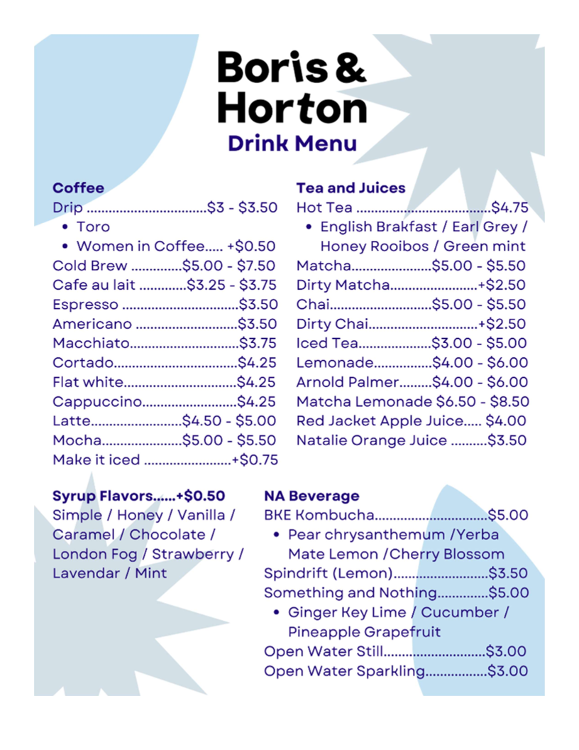 Whether you come for brunch specials or a simple coffee break, Boris & Horton promises a memorable spot for both you and your canine companion.